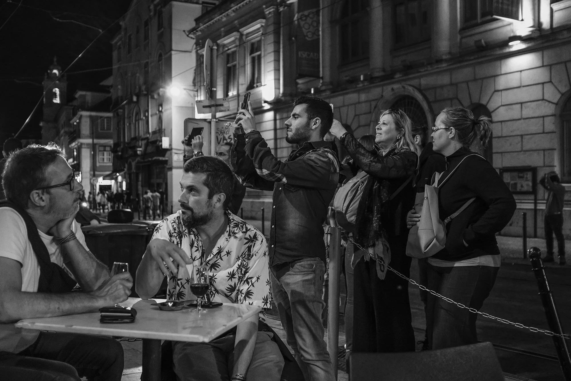 At a good friends Bar people taking pictures at escadinhas da bica.
