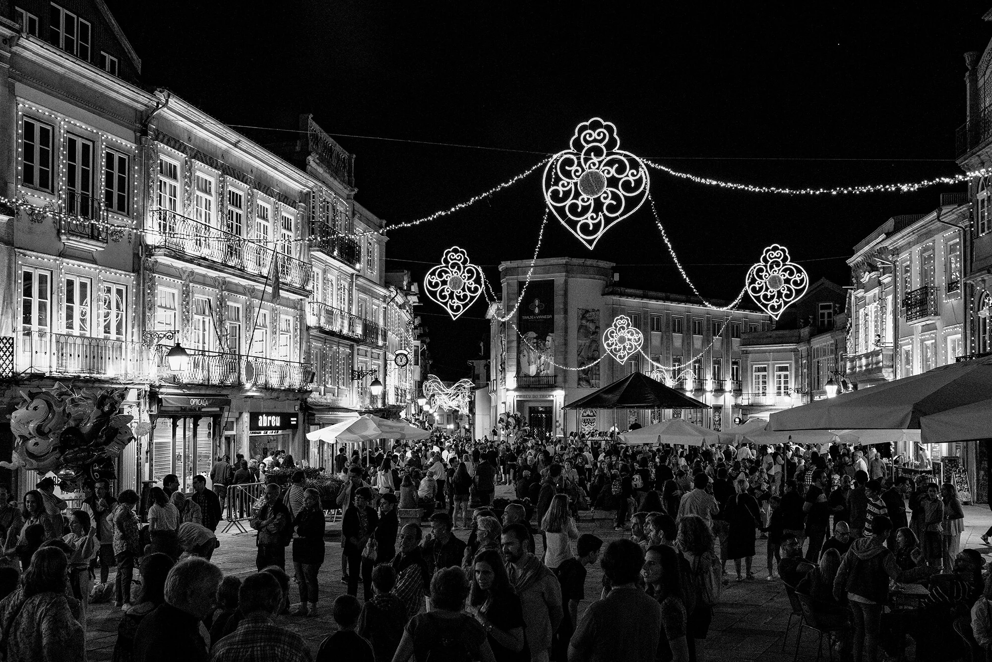 At Praça da Réplubica in Viana during the pilgrimage of Senhora da Agonia with the Viana hearts in light.