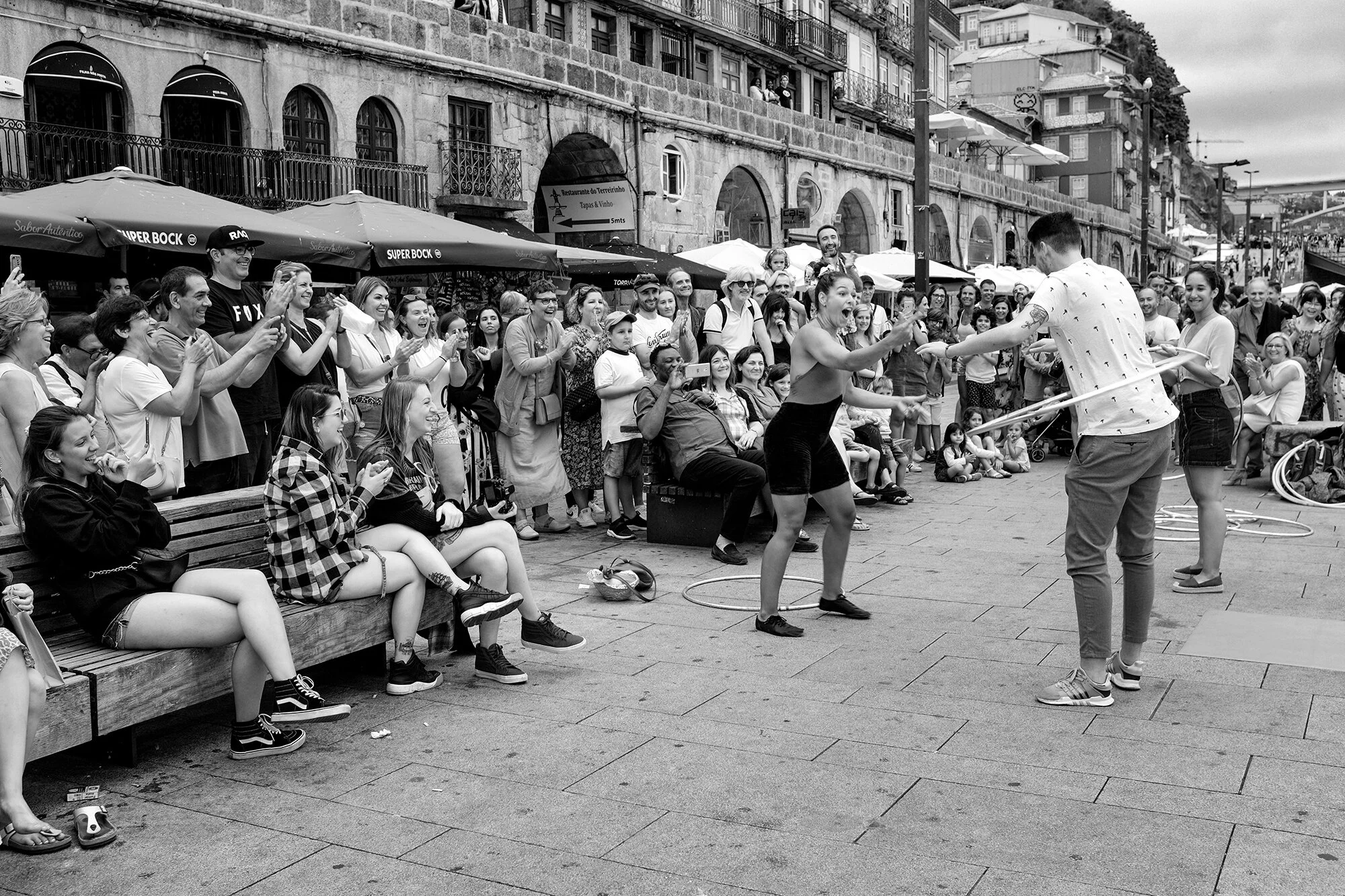Hula Hoop A guy doing hula hoop at ribeira of Porto with a crowd watching. © Rodrigo Cabral Porto 2019