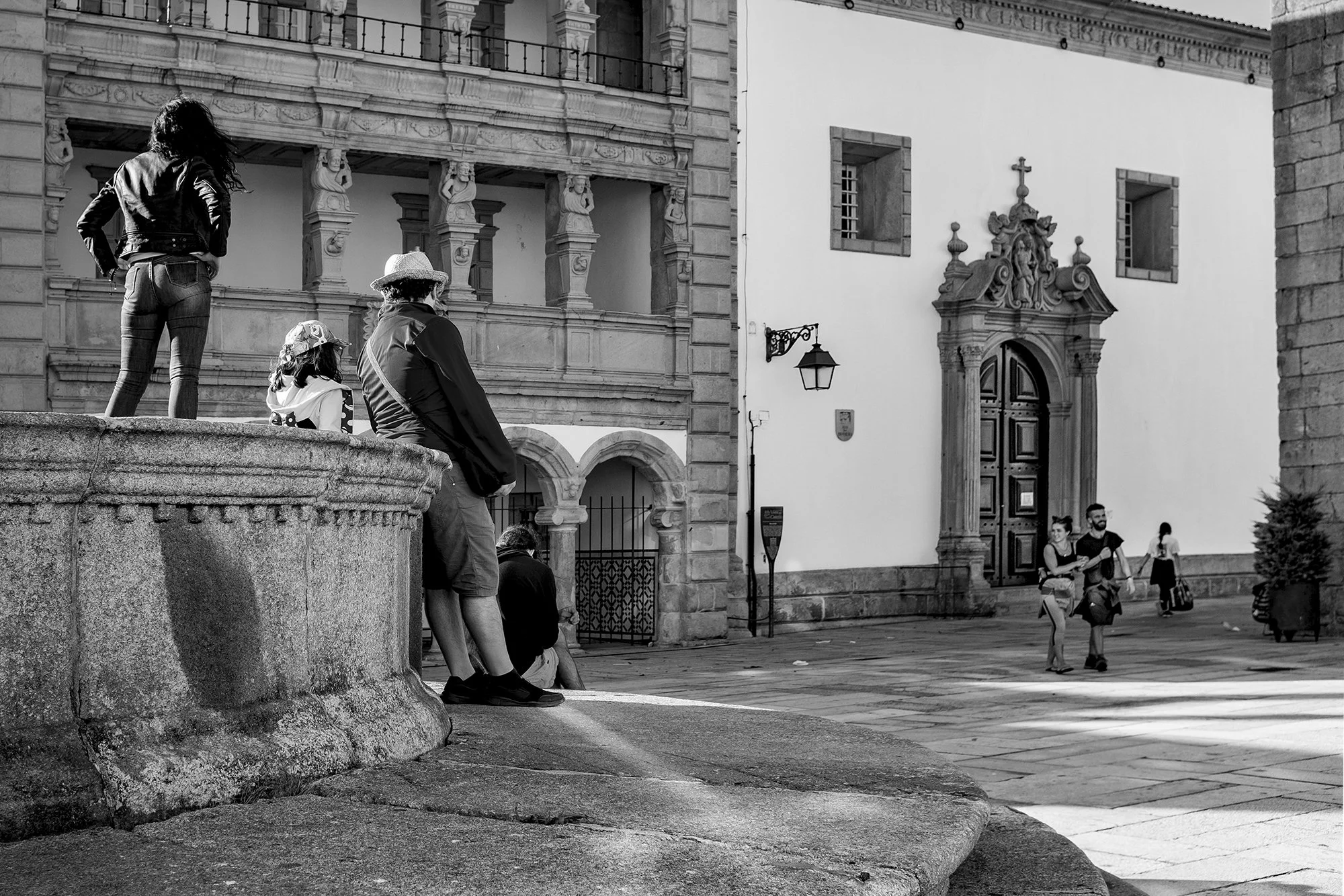 People at the fountain of República square and others walking by.